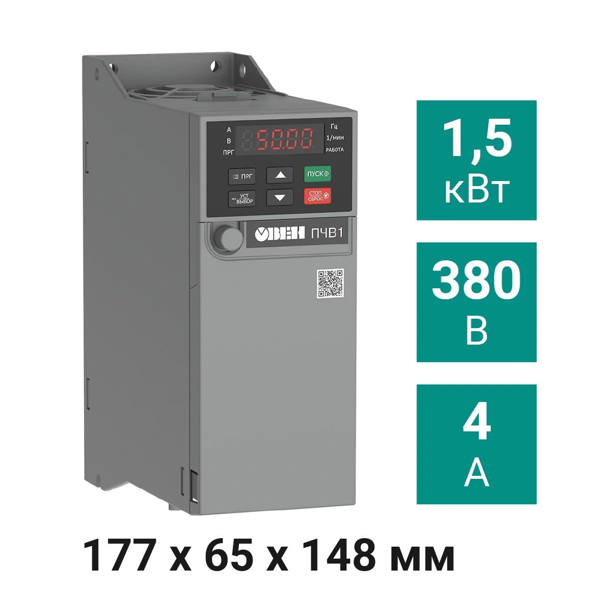 Преобразователь частоты ПЧВ1-1К5-В [М01] 1,5 кВт 380 В соответствует всем заявленным характеристикам и поставляется с официальной гарантией.