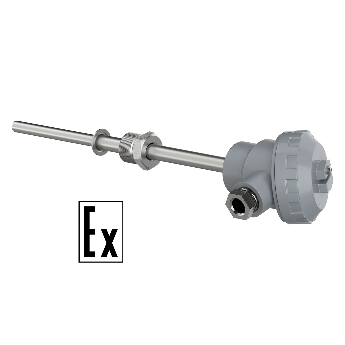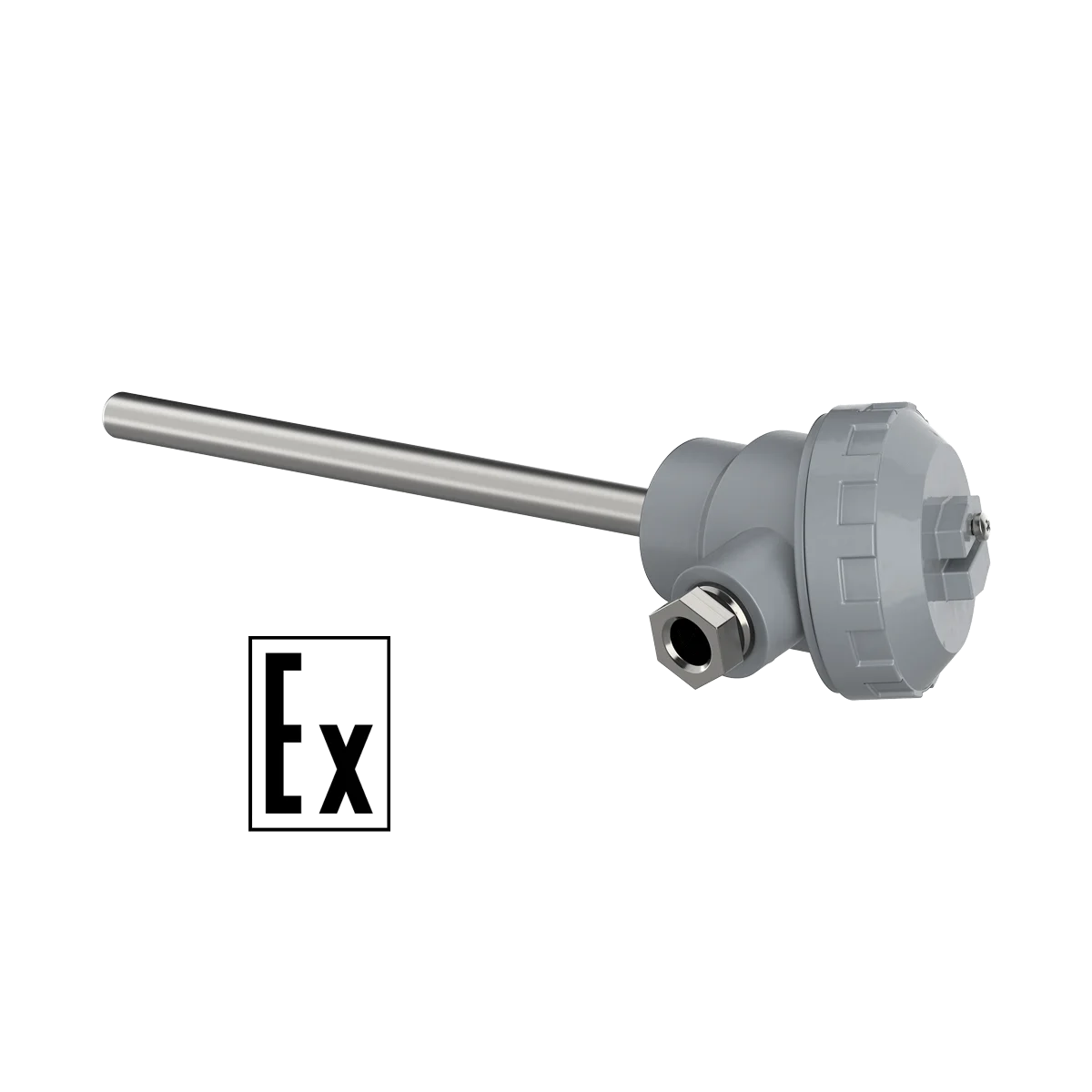 Термопары во взрывозащищенном исполнении, в отличие от датчиков в общепромышленном исполнении, применяются для измерения температуры на опасных объектах. По техническим характеристикам схожи с термопарами в общепромышленном исполнении, но содержат в конце маркировки обозначение искробезопасной цепи: «ЕХI-ТХ», где вместо Х указывается температурный класс в маркировке взрывозащиты.