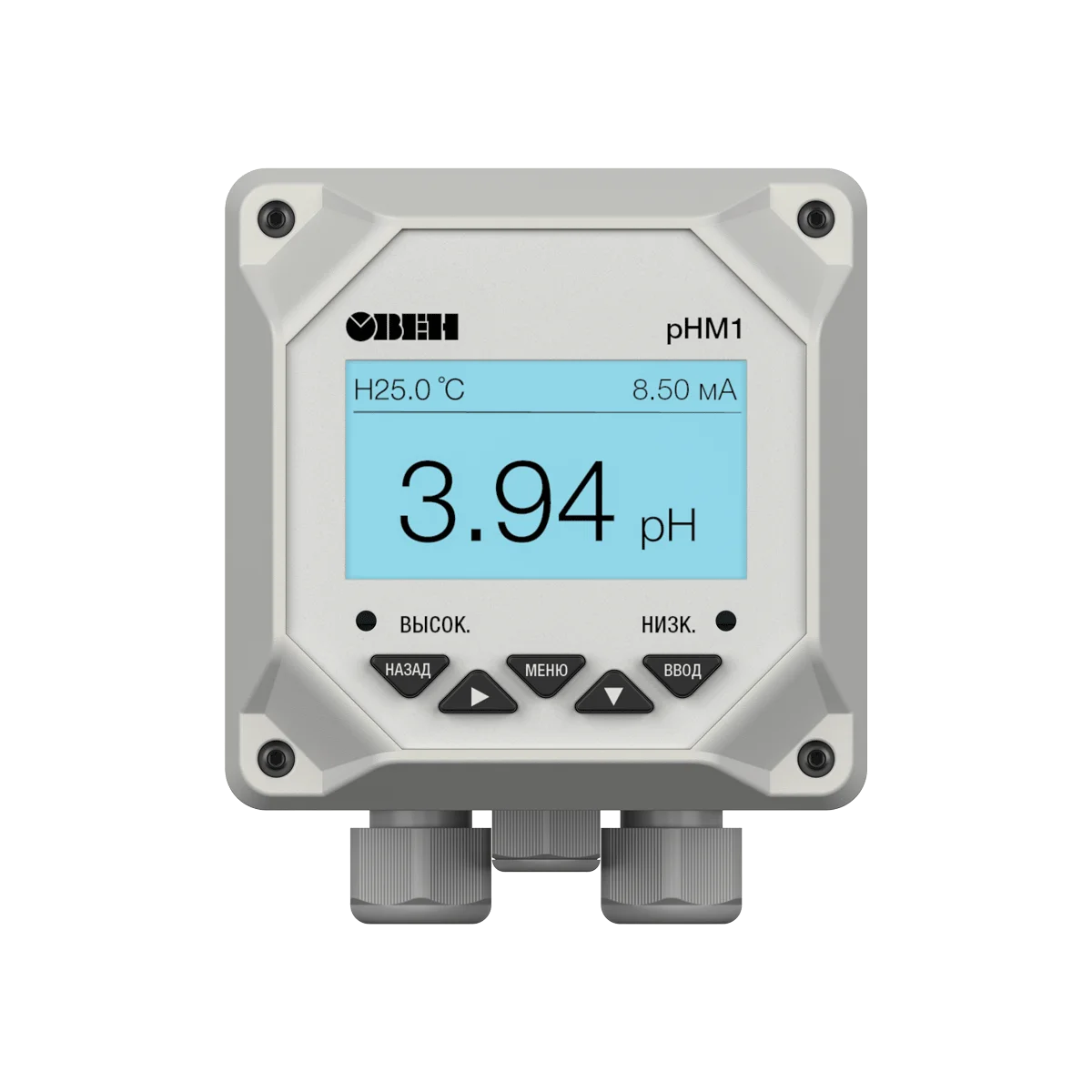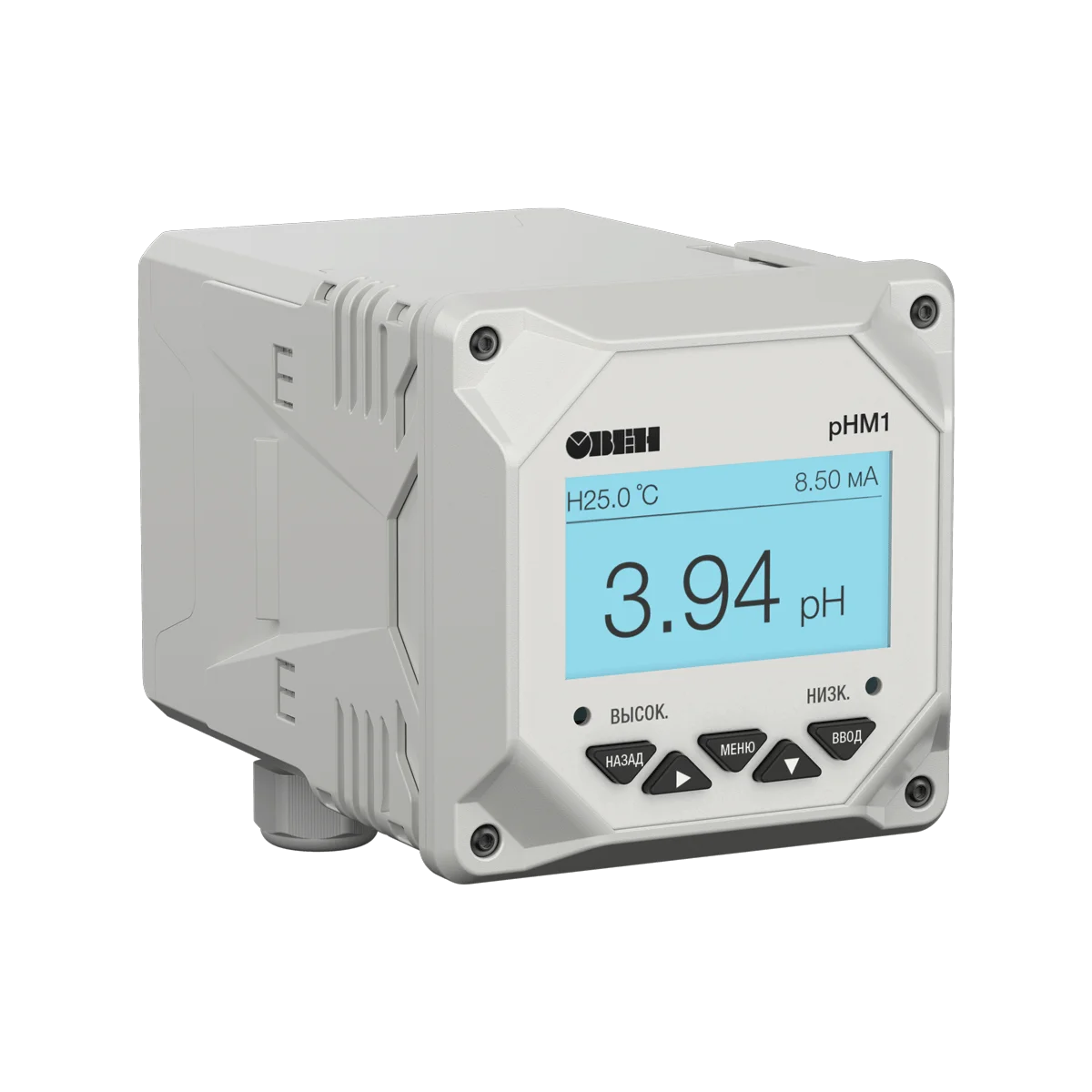 Промышленный pH-метр pHM1 предназначен для измерения уровня кислотности воды (pH), передачи данных по интерфейсам RS-485 и 4…20 мА, а также аварийной сигнализации при выходе значений за допустимые пределы.