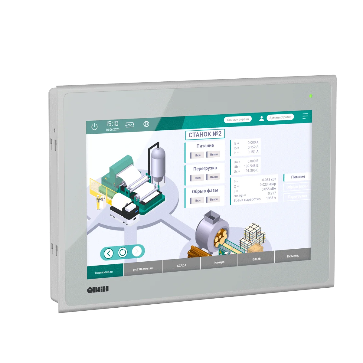 ОВЕН ВП110 – сенсорная панель оператора со встроенным веб-браузером. Предназначена для наглядного отображения веб-визуализации контроллера. ВП110 оснащена встроенным браузером c поддержкой технологии HTML5, который позволяет отображать веб-страницы. ВП110 работает напрямую с ПЛК, SCADA-системами и облачными решениями — без дополнительного ПО, без промежуточных проектов, без сложной настройки. Просто подключите по Ethernet или Wi-Fi — и управляйте.