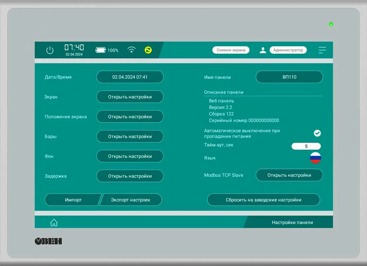 Примеры использования web-панели ОВЕН ВП110 в качестве HMI