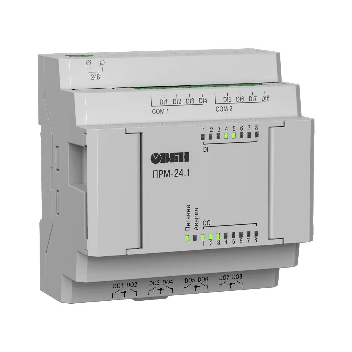 - ПРМ-1 – 8 дискретных входов DI и 8 дискретных выходов DO.
