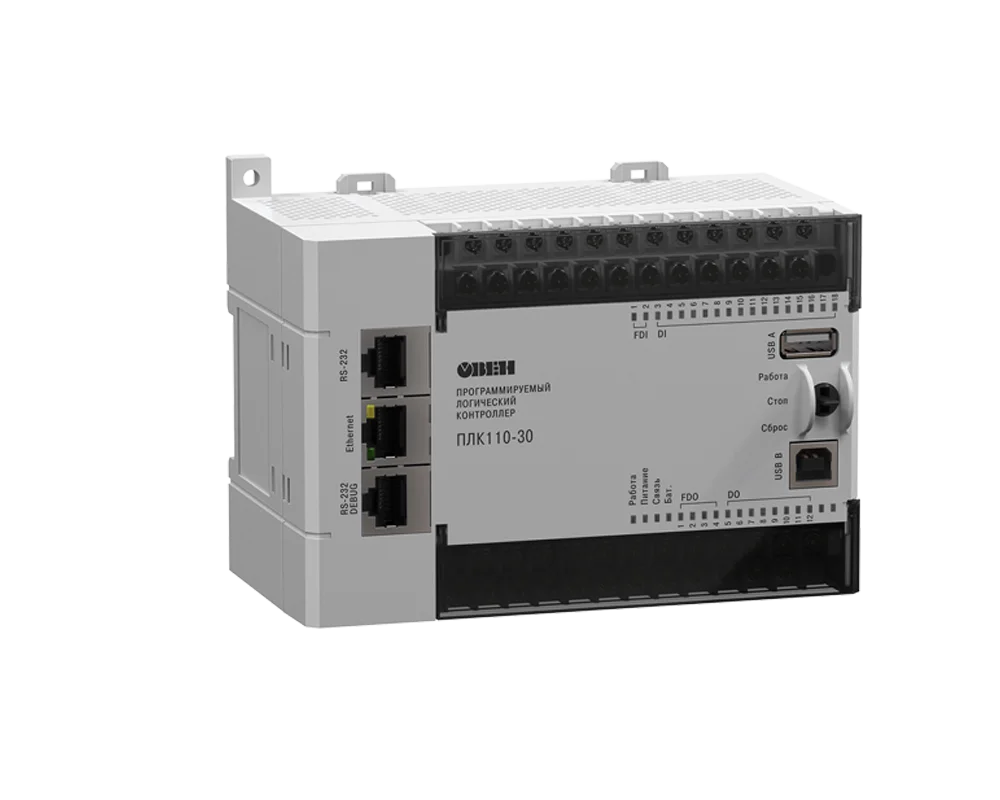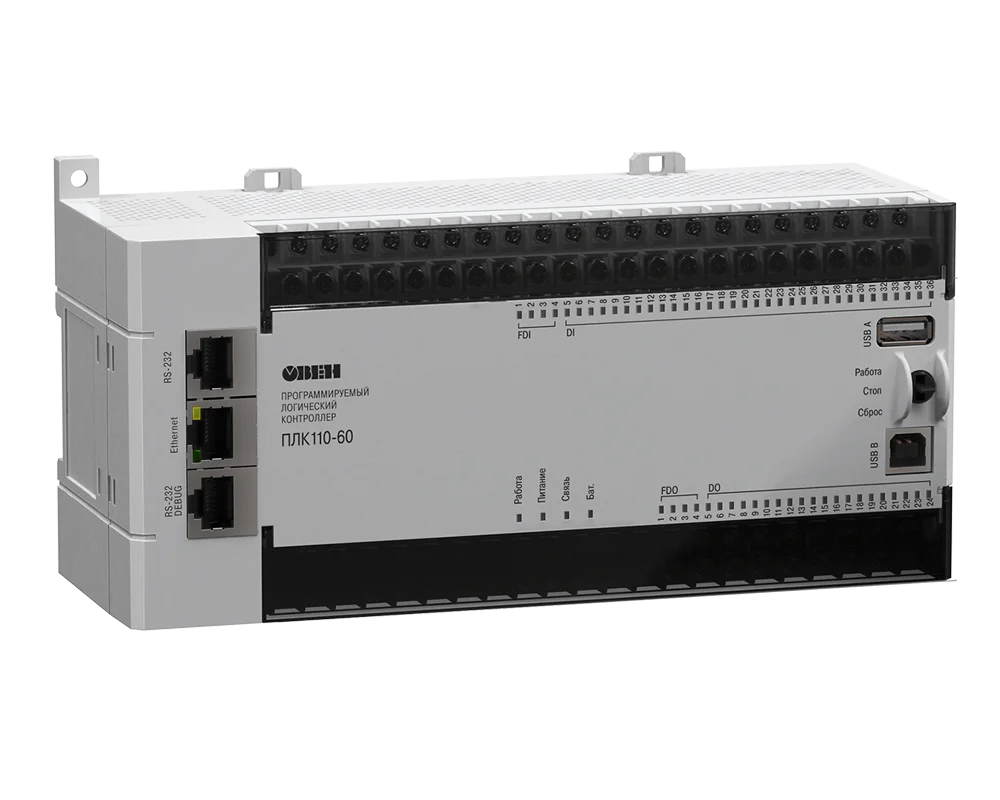 ОВЕН ПЛК110[М02] – линейка программируемых моноблочных контроллеров с дискретными входами/выходами на борту для автоматизации средних систем.
