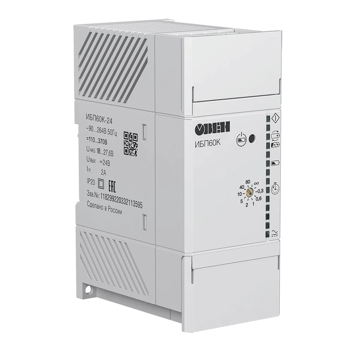 ОВЕН ИБП60К предназначен для использования в качестве резервированного источника вторичного питания при работе от сети и комплекта аккумуляторных батарей (АКБ). ИБП60К-24 является частью «Экосистемы- 210» компании ОВЕН и рекомендуется для совместного применения с программируемыми логическими контроллерами ПЛК210 и модулями ввода/вывода Мх210 в промышленности и других отраслях народного хозяйства.