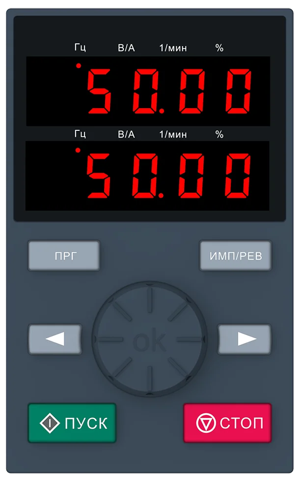 Выносная двустрочная панель оператора ЛПО2 [M01] имеет щитовой тип корпуса размером 62×100 мм. Для удобства пользования и конфигурирования ПЧВ на панели расположена многофункциональная кнопка, двустрочный дисплей и универсальное колесо-потенциометр. Подключается к линейкам преобразователей ПЧВ1 [M01] и ПЧВ3 [M01] с помощью прямого патч-корда длиной не более 30 метров.