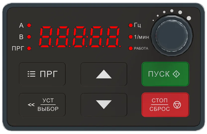 Выносная однострочная панель оператора ЛПО1 [M01] имеет щитовой тип корпуса размером 66×42 мм и служит для дистанционного управления и конфигурирования преобразователя частоты. Подключается к линейкам преобразователей ПЧВ1 [M01] и ПЧВ3 [M01] с помощью прямого патч-корда длиной не более 30 метров.