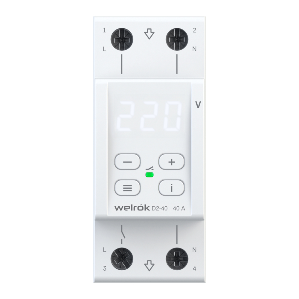 Welrok D2-40 реле напряжения на 3 клеммы соответствует всем заявленным характеристикам и поставляется с официальной гарантией.