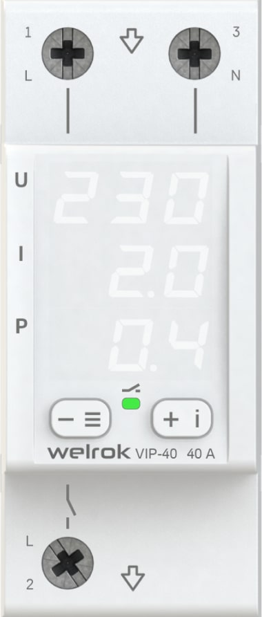 Welrok VIP-40 реле напряжения с контролем тока и мощности соответствует всем заявленным характеристикам и поставляется с официальной гарантией.
