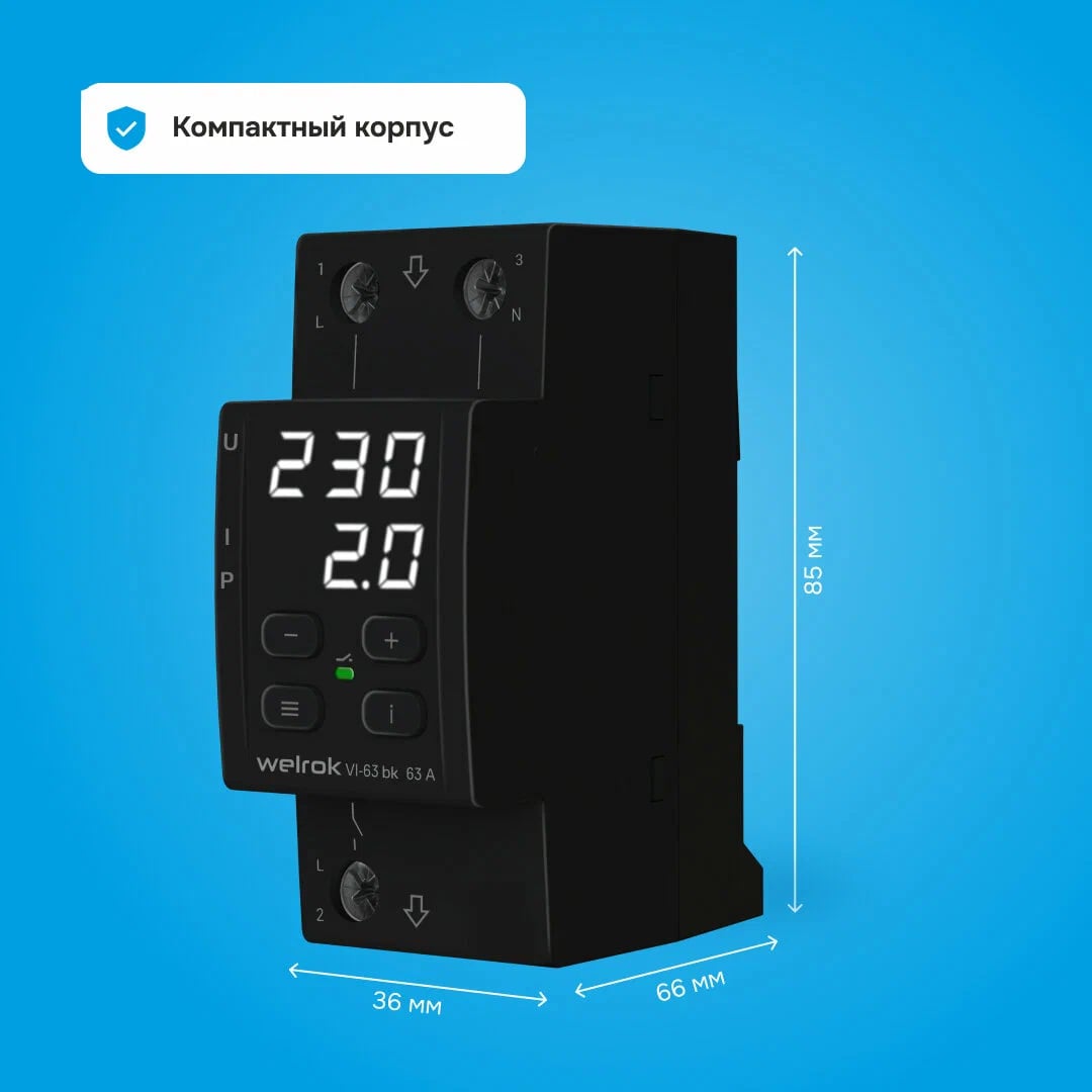 Welrok VI-63 bk реле напряжения с контролем тока соответствует всем заявленным характеристикам и поставляется с официальной гарантией.