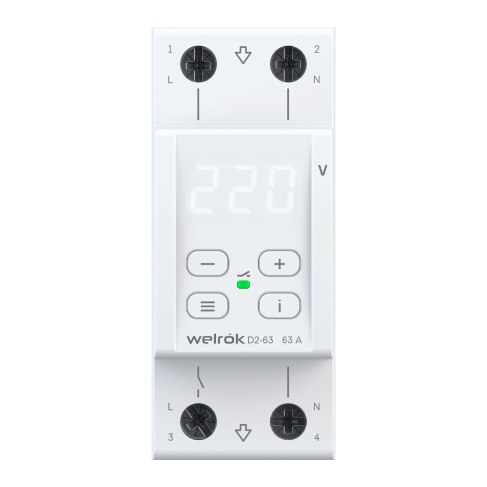 Welrok D2-63 реле напряжения на 4 клеммы соответствует всем заявленным характеристикам и поставляется с официальной гарантией.