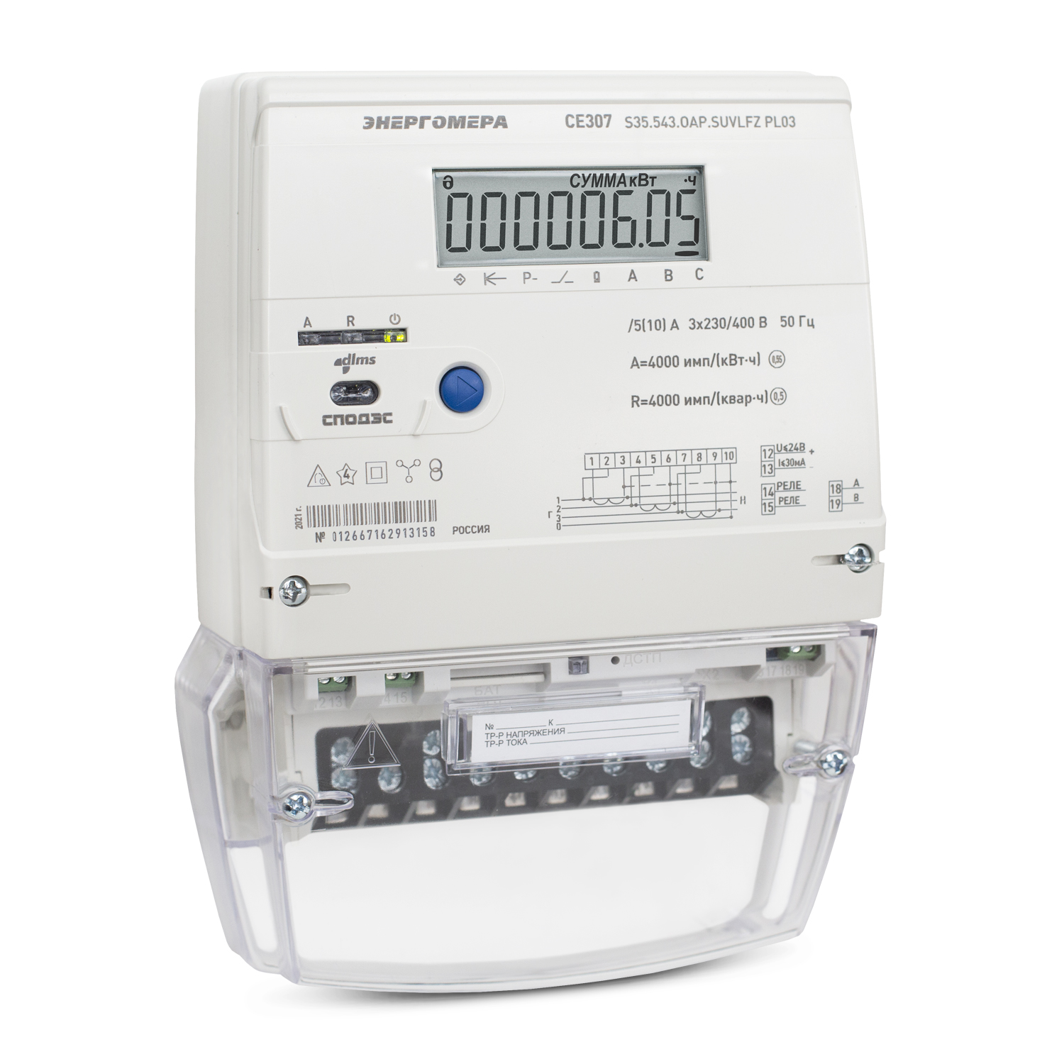 Счетчик электроэнергии Энергомера CE307 S35.543.OAP.SUVLFZ PL03 соответствует всем заявленным характеристикам и поставляется с официальной гарантией.