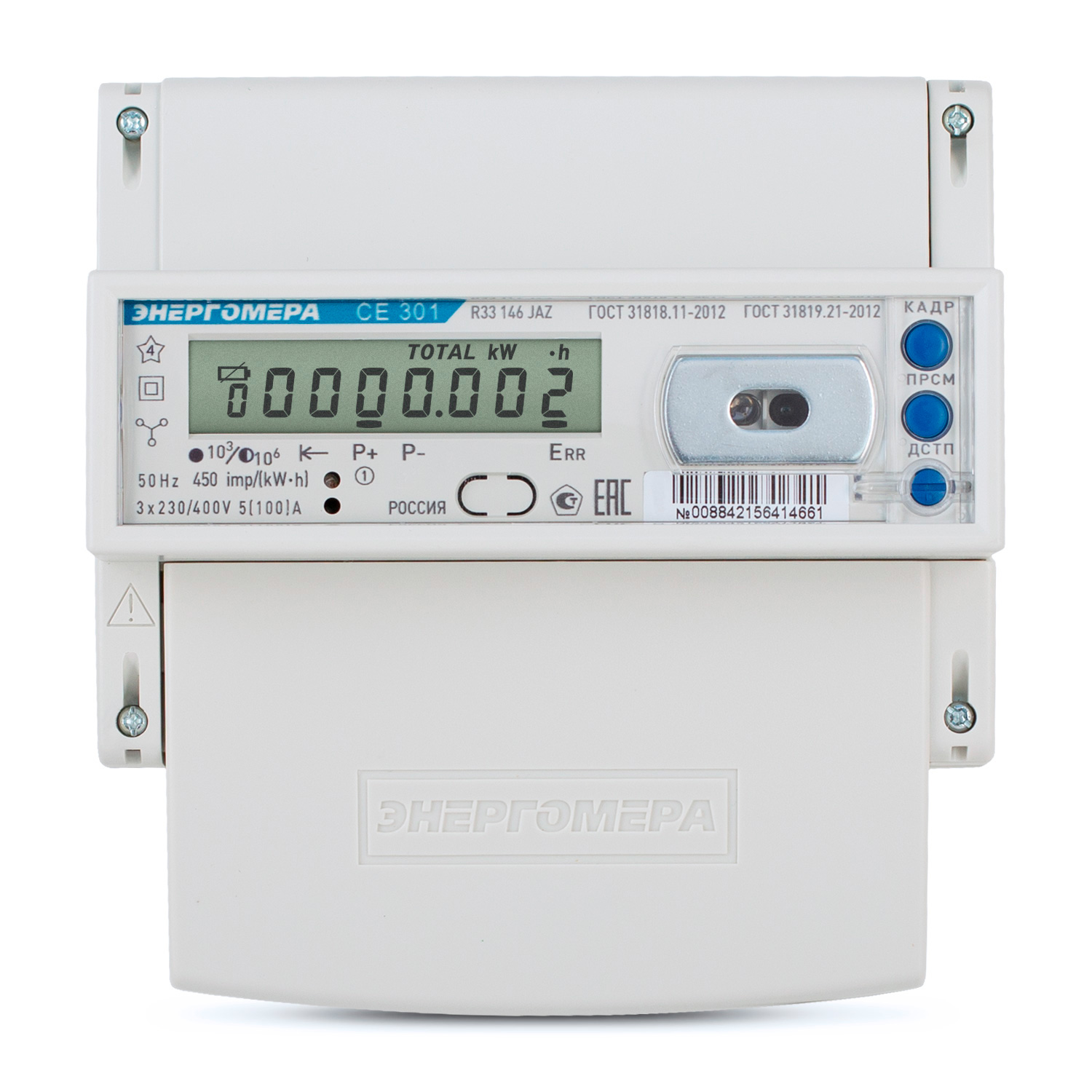 Счетчик электроэнергии Энергомера CE301 R33.146 JAZ соответствует всем заявленным характеристикам и поставляется с официальной гарантией.