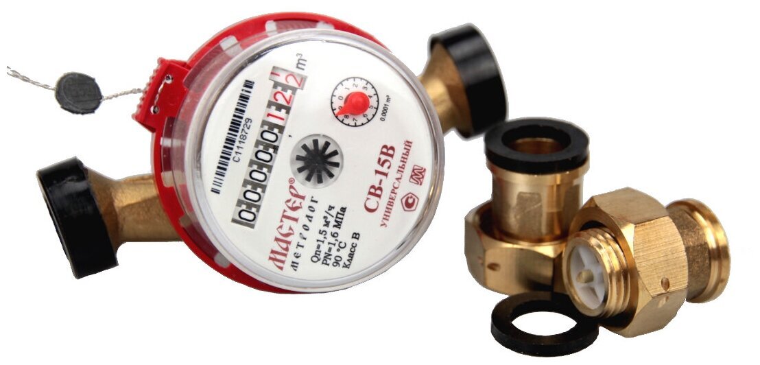 Счетчик воды Мастер Метролог СВ-15В Класс "В", соединительный комплект с обратным клапаном соответствует всем заявленным характеристикам и поставляется с официальной гарантией.