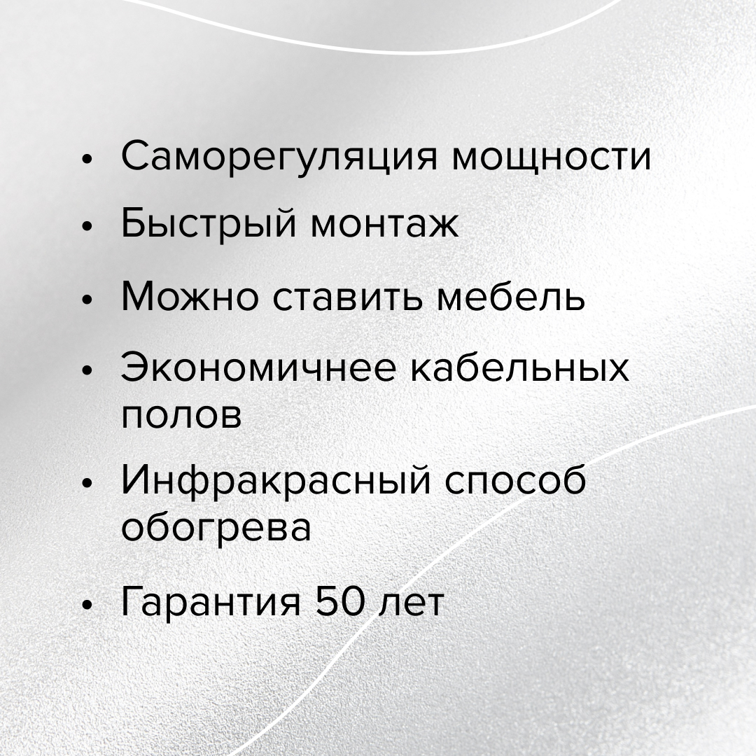 - Предотвращает "запирание" мебелью за счет саморегуляции, пол не будет нагреваться под крупными предметами.