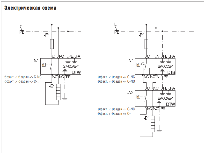 При превышении температуры ограничитель температуры полностью выключается. После падения температуры ограничитель можно разблокировать вручную. При повреждении измерительной системы (утечка) электрическая цепь полностью размыкается.