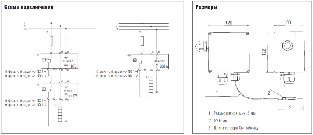 BTB, BSTB и BSTW включают приборы с температурной зависимостью (нагреватели) до 16 A напрямую. Токи включения более высоких значений или 3-х фазный реализуются через контактор.Преимущества BTB (27-6DJ2-5232/1300)