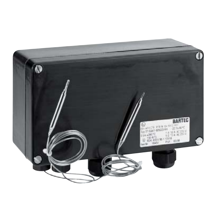 Промышленный термостат BSTW/BTB 27-6DU2-5242/1330 - это двухпозиционные регуляторы в корпусе из полиэстера с характеристикой Ex e. Нагреватели, вентиляторы, двигатели и другие приборы включаются или отключаются каждым термостатом, в случае если температурные показатели выходят за пределы заданных значений. Возможно использование для температурного контроля в воздухе или на поверхностях.