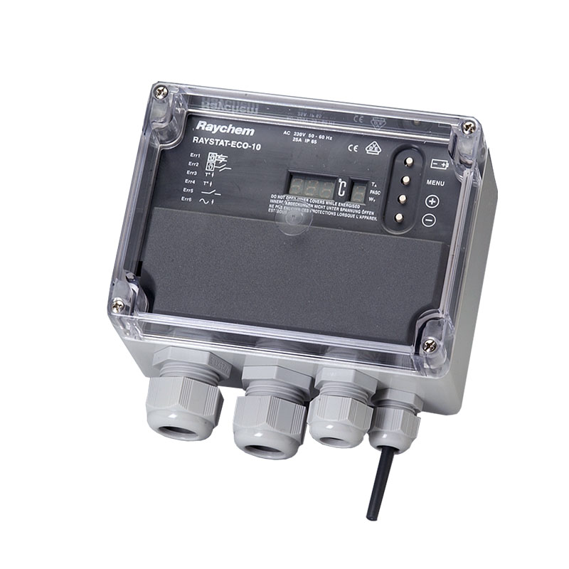 Контроллер RAYCHEM RAYSTAT-ECO-10 предназначен для управления греющими кабелями, использующимися в системах защиты от замерзания. Контроллер непрерывно корректирует мощность электрообогрева, базируясь на температуре окружающей среды. С помощью специального алгоритма на базе измеренной температуры окружающей среды контроллер RAYSTAT-ECO-10 определяет соответствующую продолжительность периода времени, в течение которого греющие кабели будут включены.