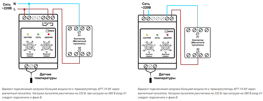Схема подключения АРТ-19-5 с датчиком KTY-81-110