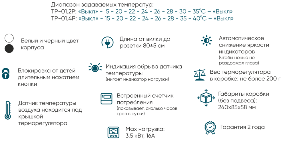 Эрголайт ТР-01.4Р терморегулятор для обогревателей на проводе, белый соответствует всем заявленным характеристикам и поставляется с официальной гарантией.