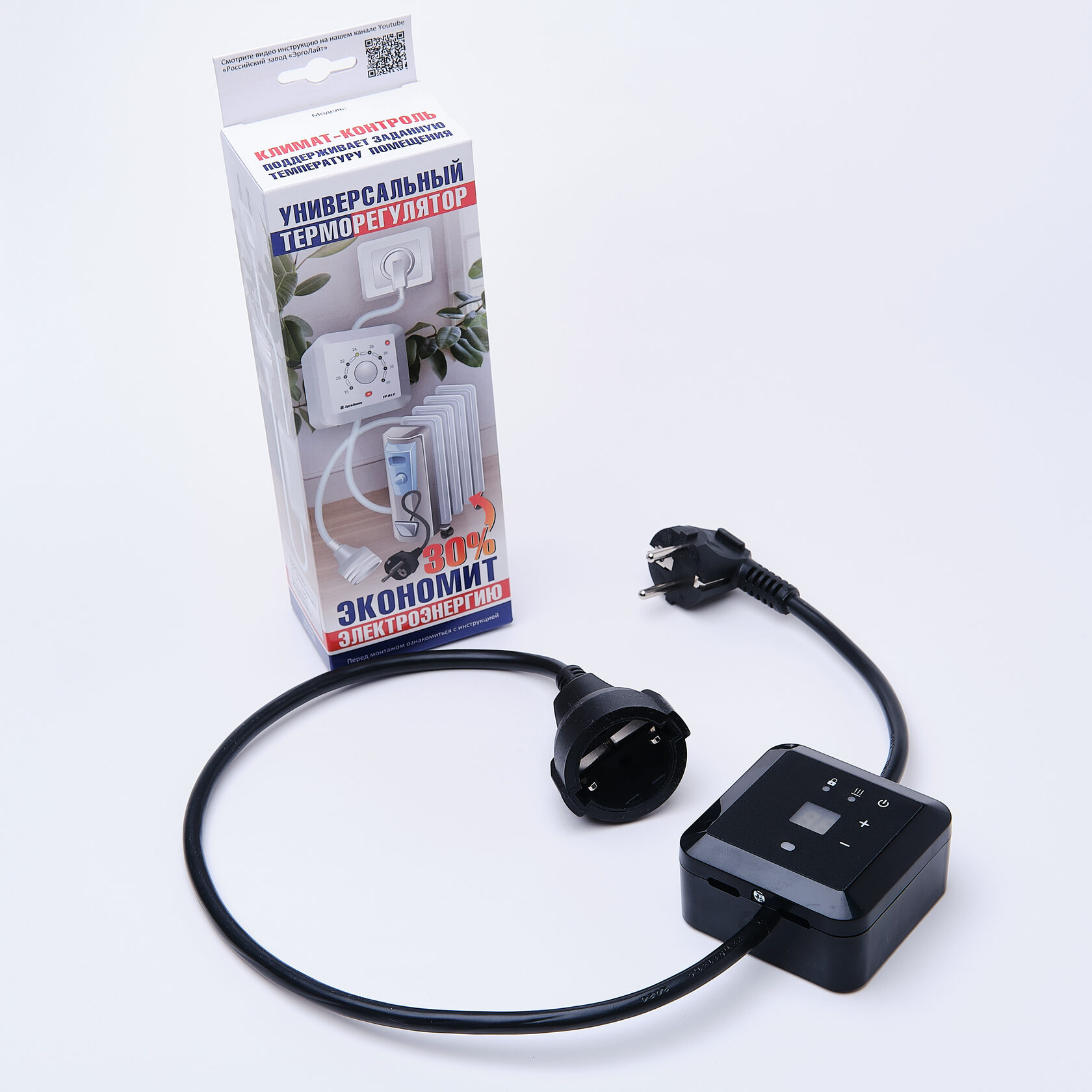 Эрголайт ТР-09Р терморегулятор для обогревателей на проводе с вилкой и розеткой, черный соответствует всем заявленным характеристикам и поставляется с официальной гарантией.