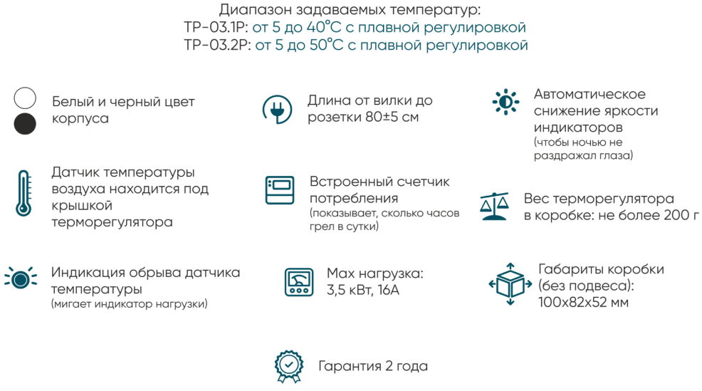 Эрголайт ТР-03.1Р терморегулятор для обогревателей на проводе, черный соответствует всем заявленным характеристикам и поставляется с официальной гарантией.