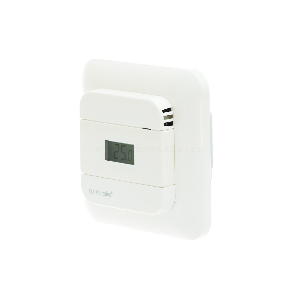 OJ Electronics OTN2-1991 с датчиком температуры пола имеет жидкокристаллический дисплей, на котором отображается температура пола, воздуха в помещении или заданная температура. Термостат очень легок в использовании — просто выставляется нужная температура, которую в дальнейшем поддерживает термостат. Пластиковая крышка закрывает элементы управления, оставляя видимым только жк дисплей. Это снижает случайный сбой настроек. С помощью кнопок возможно установить максимальную и минимальную температуры регулировки. Глубина установки OTN2 составляет всего 18 мм, позволяя оставить больше места для установки тепловых и силовых кабелей. Клеммный зажим «Сage-clamp» функционирует как элеватор. Он обеспечивает отличный электрический контакт без повреждения проводов. Ультратонкая глубина установки и удобный дизайн клеммного зажима гарантирует несложную и быструю установку.