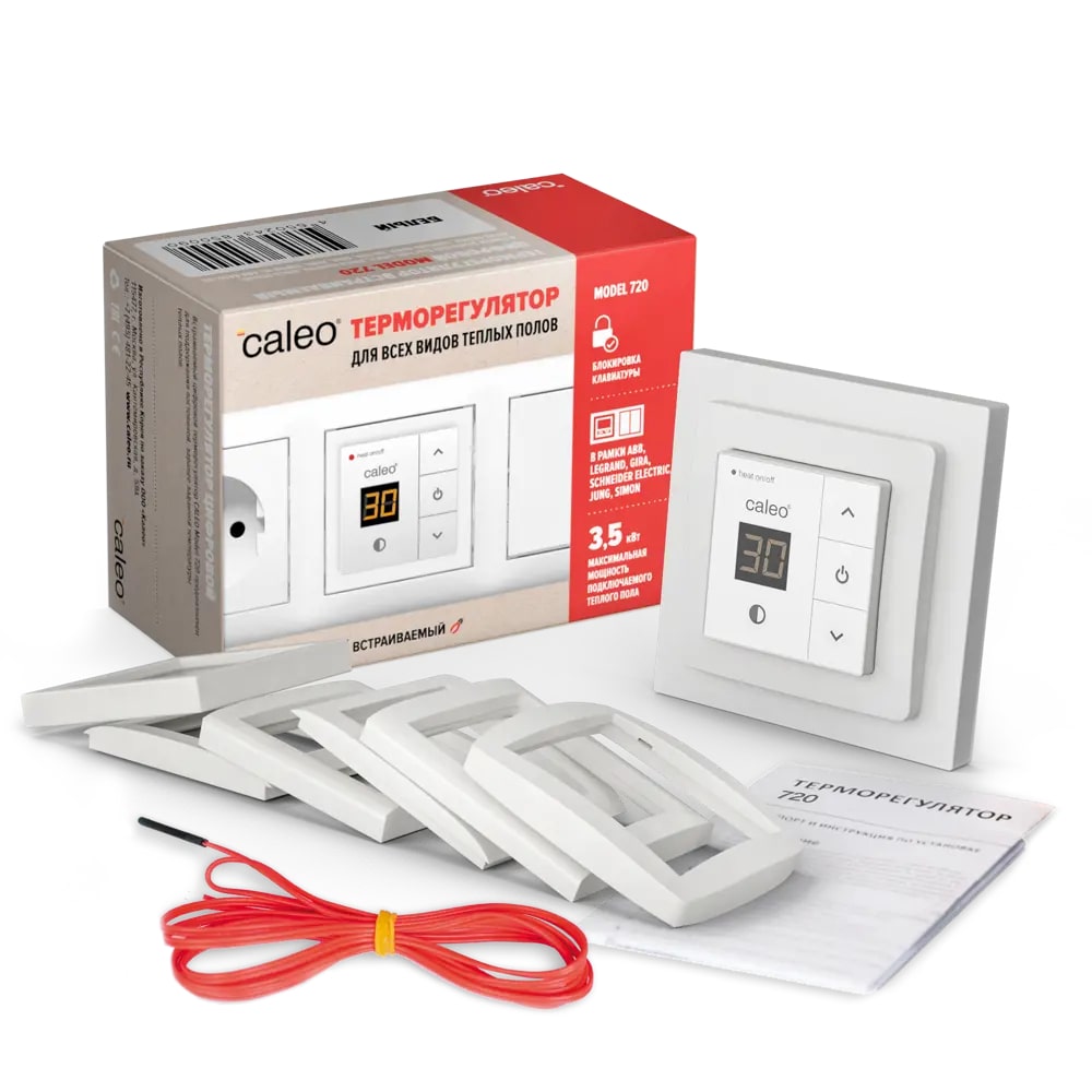 CALEO 720 терморегулятор для теплого пола с адаптерами, белый соответствует всем заявленным характеристикам и поставляется с официальной гарантией.