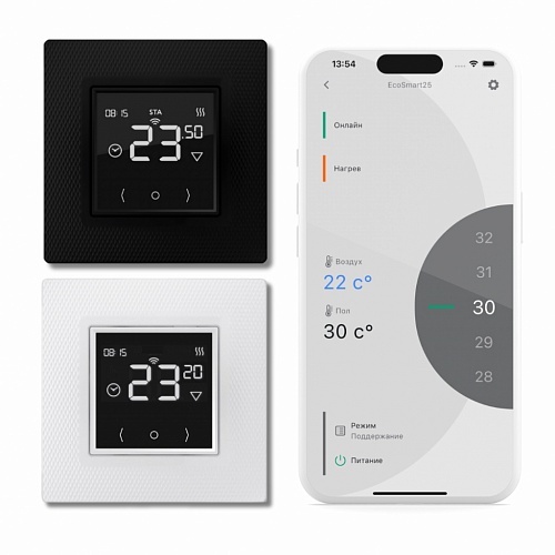 - Двойное управление обогревом: со смартфона или экрана терморегулятора