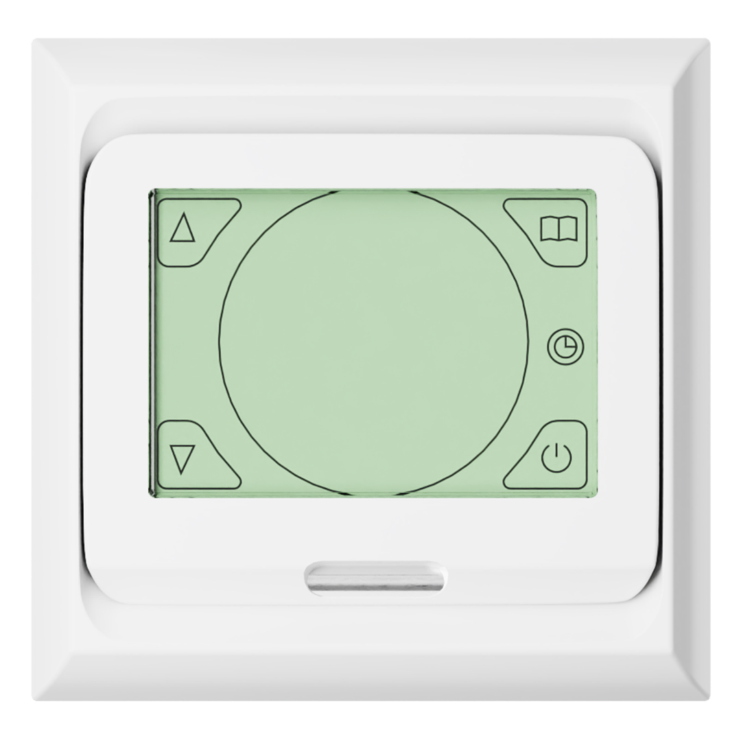 Монтаж в стандартную монтажную коробку. В зависимости от модели прибора пределы регулирования температуры от 5℃ до 40℃.В зависимости от модели прибора имеются встроенные датчики температуры воздуха, температуры пола.