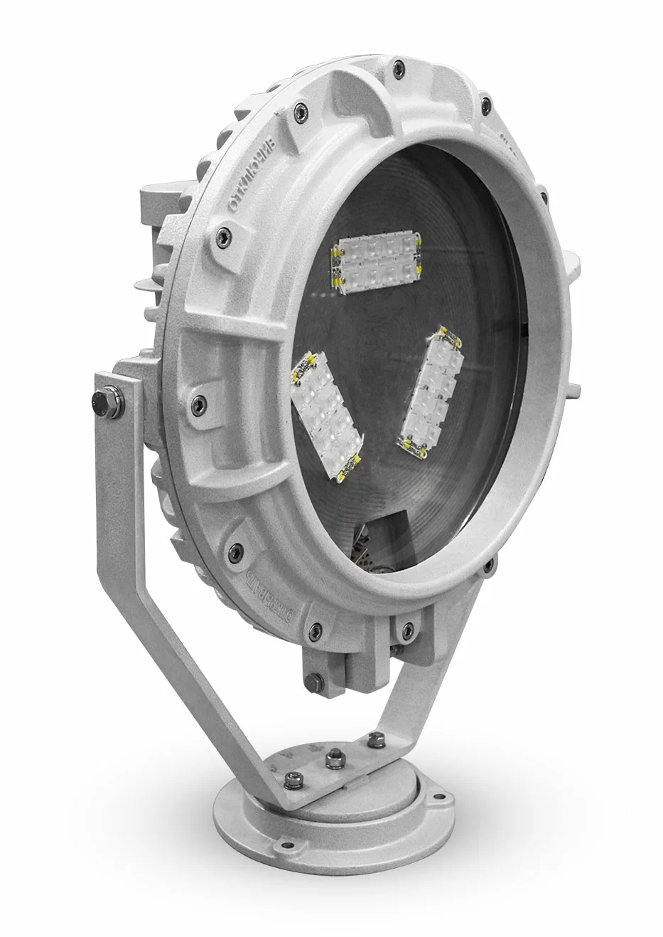 Корпуса взрывозащищенных светодиодных прожекторов серии СГП06-...С выполнены из коррозионностойкого модифицированного алюминиево-кремниевого сплава, устойчивого к солевому туману и другим химическим веществам. Для покрытия корпусов используется антистатическое полимерно-эпоксидное порошковое окрашивание. Цвет окрашивания RAL 7035. Светопропускная часть прожекторов - ударопрочное осветленное стекло, обладающее высокой механической прочностью, износоустойчивостью, термостойкостью при перепаде температур, химостойкостью, высокой светопропускной способностью.