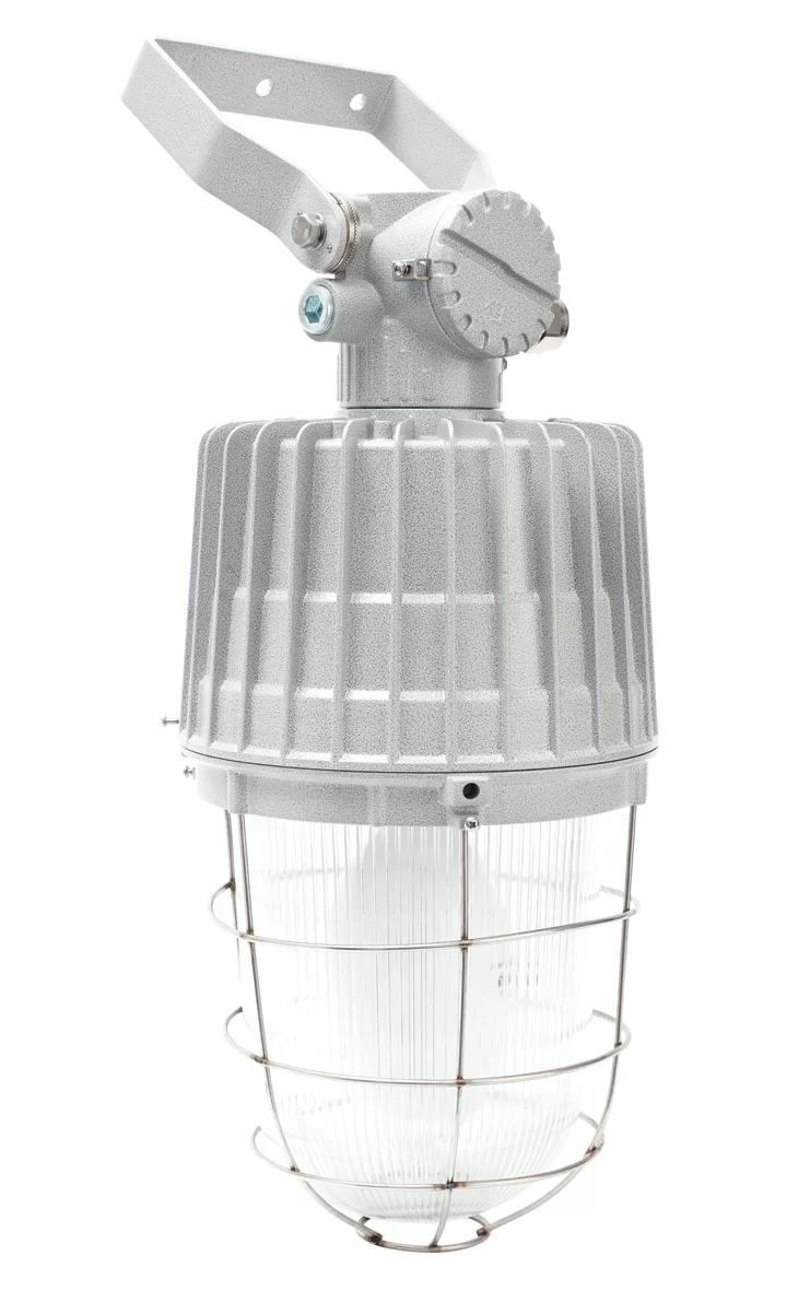 Взрывозащищенные светильники серии СГЖ04 предназначены для освещения помещений промышленных предприятий, открытых промышленных площадок, и других мест, где возможно присутствие взрывоопасных сред. Взрывозащищенные светильники серии СГЖ04 состоят из алюминиевого корпуса со встроенным патроном и термостойкого ударопрочного колпака, крепящегося к корпусу с помощью резьбы и защитной решетки.