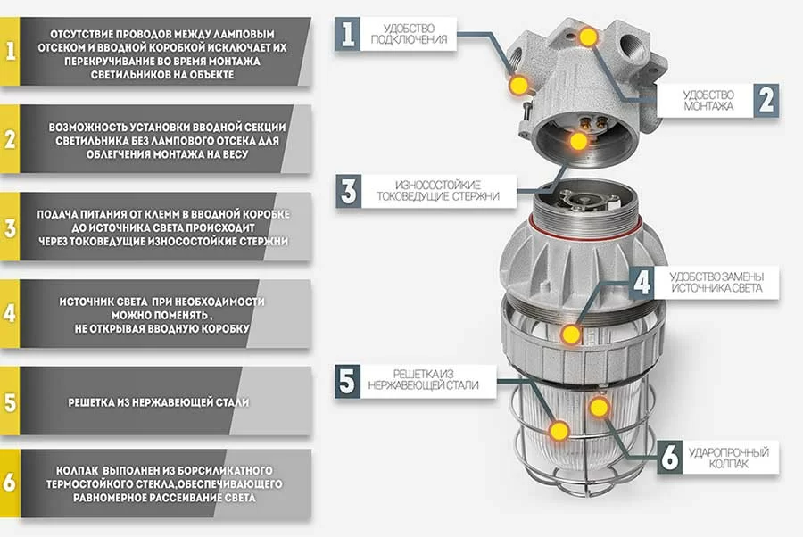 Взрывозащищенные светильники СГЖ01 (EV) под различные лампы с цоколем Е27 (для ламп накаливания, энергосберегающих ламп и др.) соответствует всем заявленным характеристикам и поставляется с официальной гарантией.