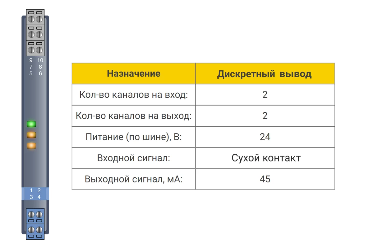 | Входной сигнал: | Сух. контакт, откр. коллектор |