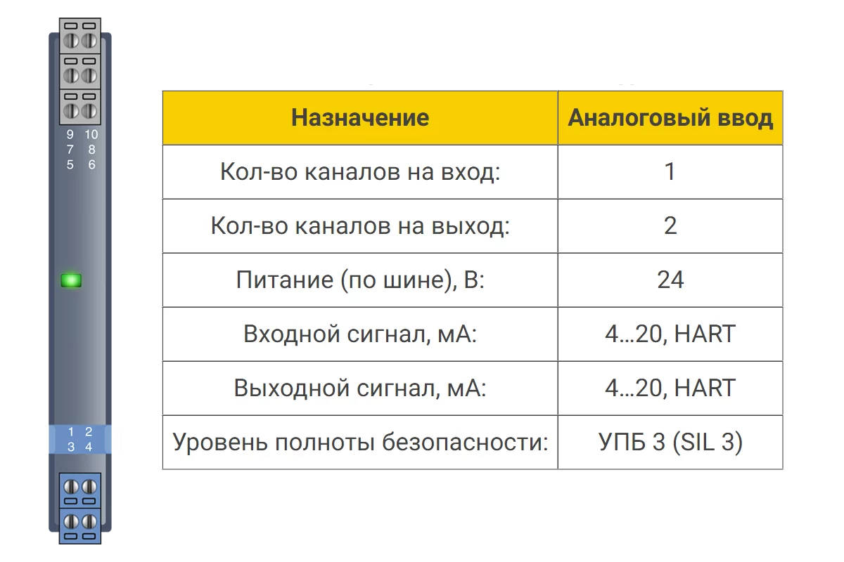 Барьер предназначен для передачи токового сигнала измерительной цепи из взрывоопасной зоны в сигнал тока или напряжения в безопасную зону при помощи гальванической развязки, а также для питания измерительных преобразователей во взрывоопасной зоне. Сигналы HART передаются в обоих направлениях.