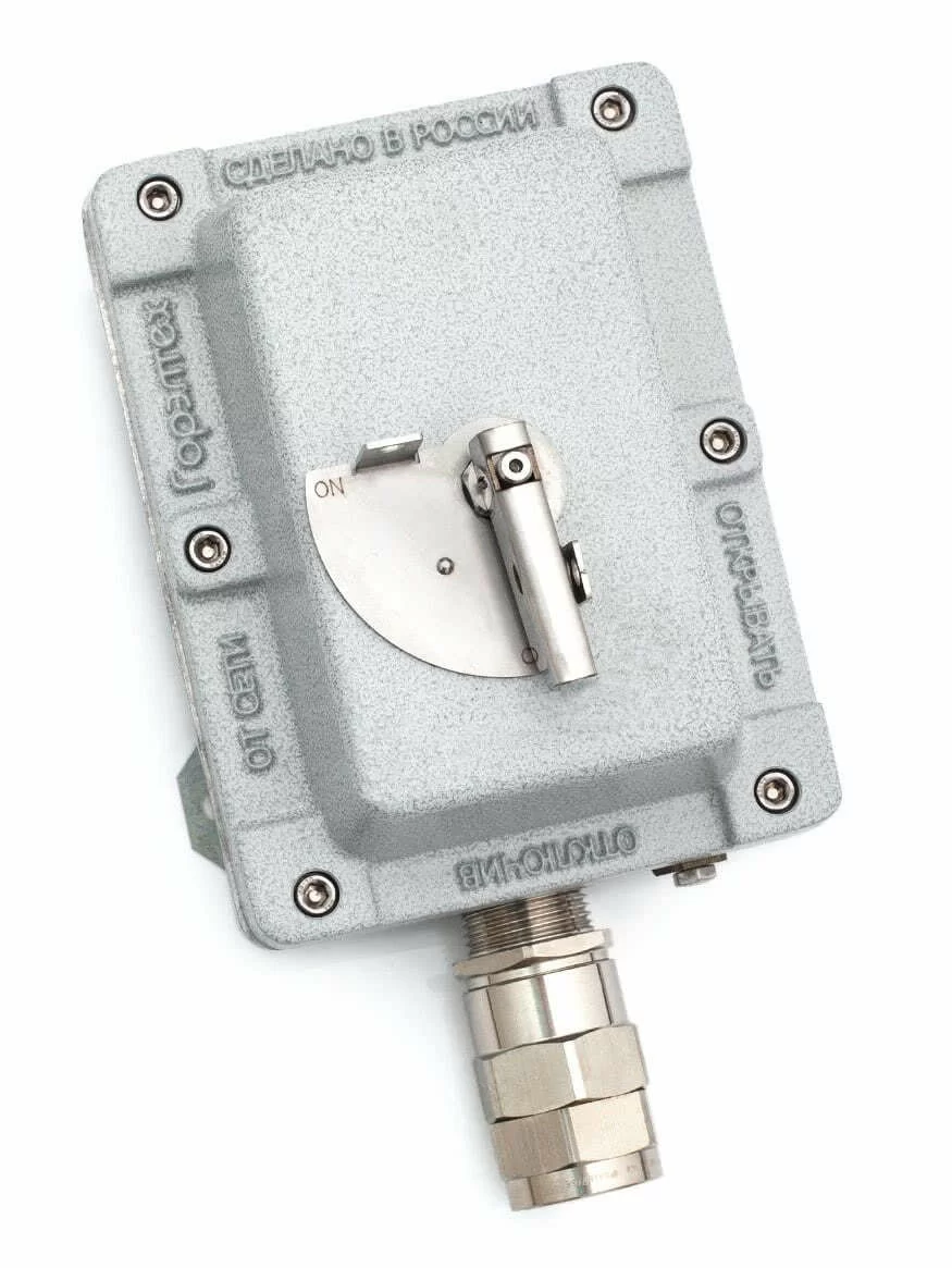 Для увеличения надежности взрывозащищенных выключателей ШГВ-РТЗ OOO «ЗАВОД ГОРЭЛТЕХ» применят специально подобранные модульные выключатели тепловой защиты с более высококачественными изоляционными материалами, по сравнению с общепромышленными. Это позволяет получить изделия не только соответствующие уровню необходимой категории взрывоопасности смеси, но изделие исключающие перегрев и дальнейшею неисправность электрических компонентов. На крышке корпуса установлена удобная большая ручка управления. (Важно при работе в рукавицах на улице при низких температурах). На ручку управления можно устанавливать пломбу или замок для защиты от несанкционированного использования.