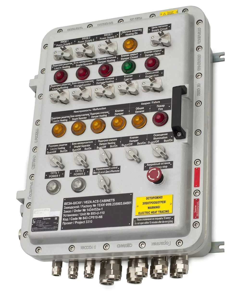клеммная взрывозащищенная 1Ex db IIB+H2 T5 Gb, IP66. - тип коробки ЩОРВ423222; - клеммник винтовой UT4 под кабель 0,14-6 мм2 - 60 шт.; - клеммник заземления винтовой UT4-PE под кабель 0,14-6 мм2 - 10 шт.; - кабельный ввод КНВТВ2МGHK/P для небронированного кабеля d=6-18 мм с присоединительной резьбой G 3/4 - 13 шт.; - кабельный ввод КНВТВ3МGHK/P для небронированного кабеля d=12-25 мм с присоединительной резьбой G 1 - 3 шт.; - пробка ВЗКВ2 - 13 шт.; - пробка ВЗКВ3 - 3 шт.; Температура окружающей среды, °С: -60...+60 Габаритные размеры изделия: 486 х 422 х 224 мм Масса: 27,63 кг ТУ 27.33.13-033-72453807-2017 |