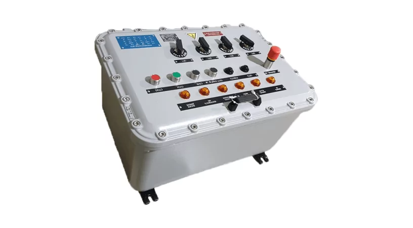 Основой конструкции УУМ ВО является взрывонепроницаемая оболочка «d», в которую могут быть установлены общепромышленные комплектующие, такие как автоматические выключатели, контакторы, реле, защитные и измерительные приборы и др. На периметре устанавливаются Ех-кабельные вводы, а на крышке для серии МС могут быть установлены управляющие и индикаторные Ех-компоненты.