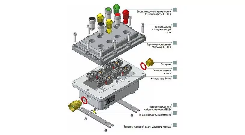 Пульты управления LPS изготавливаются на базе взрывонепроницаемых оболочек ATELEX LPS, управляющих и индикаторных насадок AL.AP.AS. и кабельных вводов ATELEX. Данные пульты управления предназначены для применения во всех взрывоопасных смесях, кроме рудничного метана, т.е. в категориях смесей IIA, IIB и IIC, включая ацетилен.